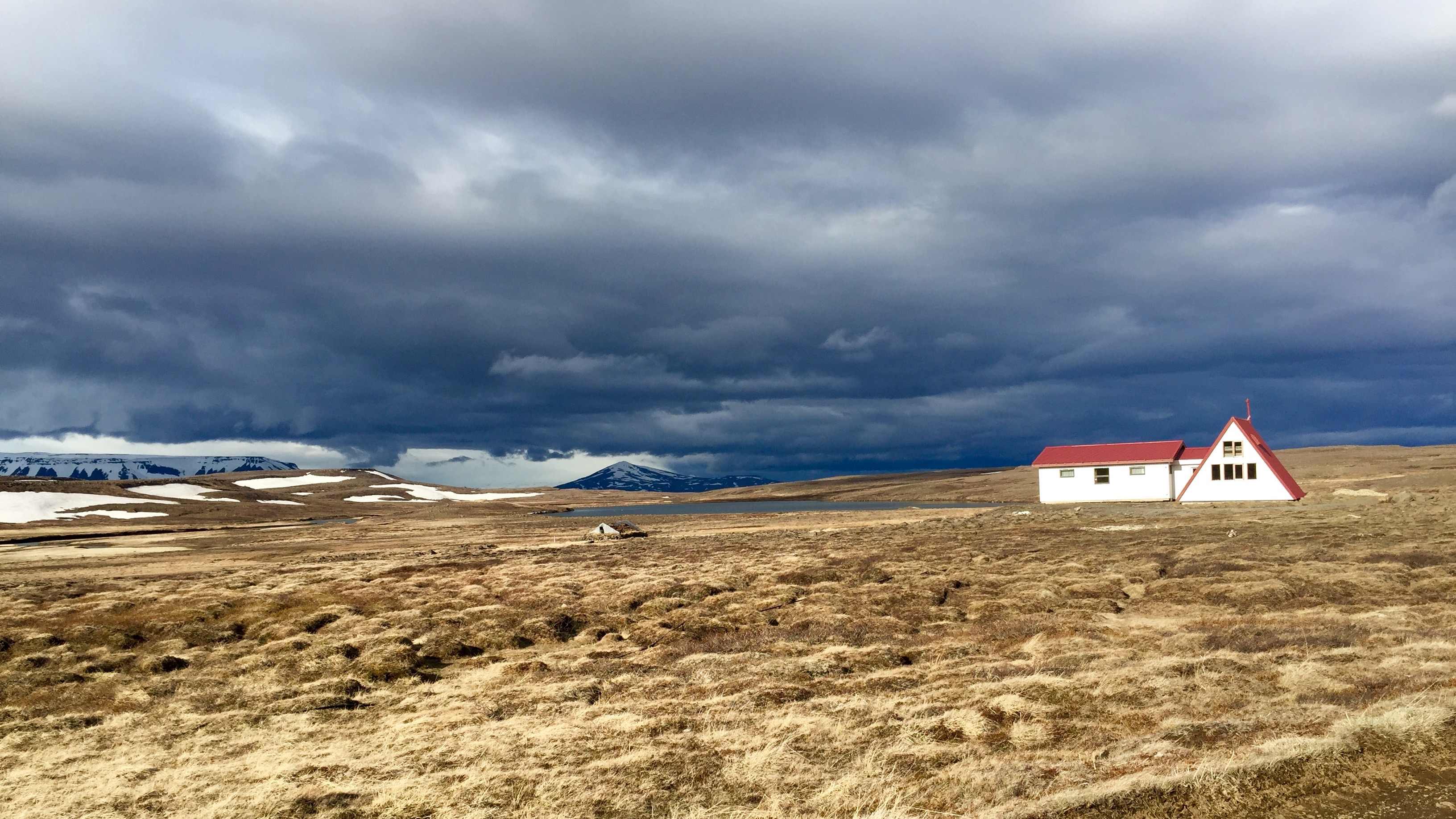 More taping, and protecting the tape with temporary plastic bags in anticipation of my early-morning ford across Norðlingafljót, and I was off again. I knew that most of my elevation gain and loss were behind me–as were most of my trail miles. The road across the Arnarvatnsheiði alternated between rolling jeep road and flat, straight gravel on which I could often see for several miles ahead.